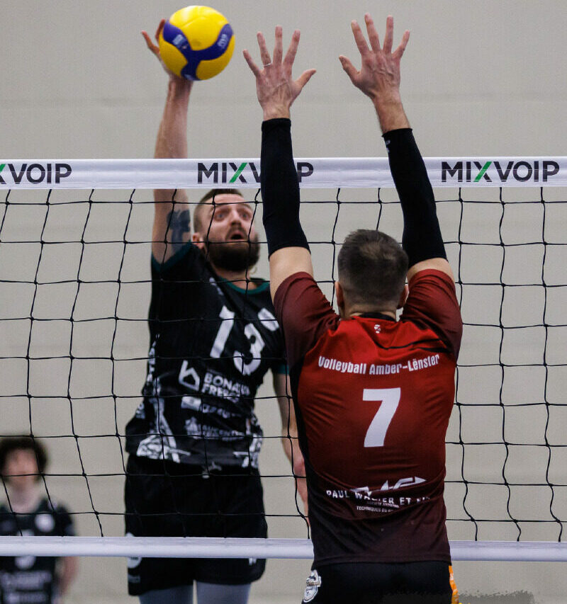 C’est l’image forte du week-end côté masculin. Esch, dos au mur toute la saison, a réussi ce que peu imaginaient encore possible. Accrocher une victoire, qui plus est un 3-0, face à son concurrent direct Amber-Lënster. Un succès sec et sans détour donc, qui change tout. Grâce à ces trois points glanés au dernier moment, les hommes de Juan Carlos Blanco abandonnent la dernière place. Un renversement presque irréel et arraché dans l’urgence qui lui permet d’affronter Echternach plutôt que Fentange.